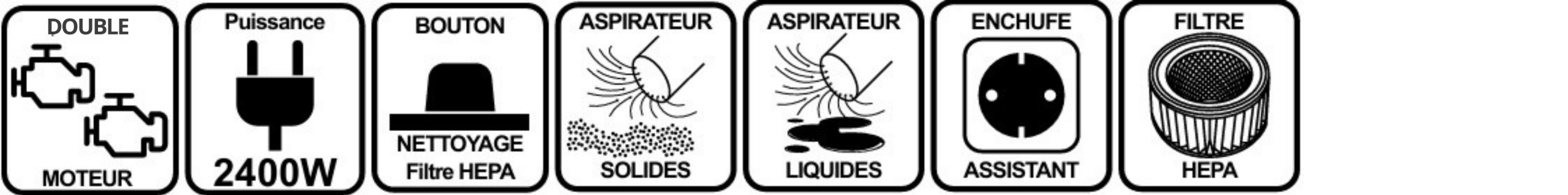 . Aspirateur pour solides et liquides avec 2 moteur indépendants de 1200W chacun.