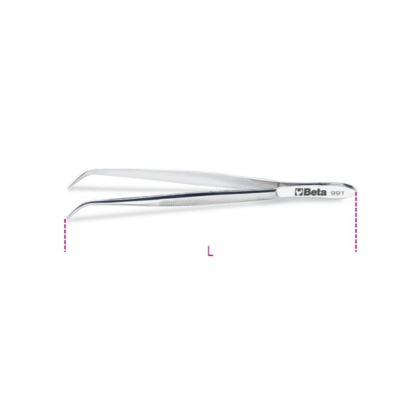 Brucelles à becs coudés pointes fines arrondies striées finition polie en acier inoxydable