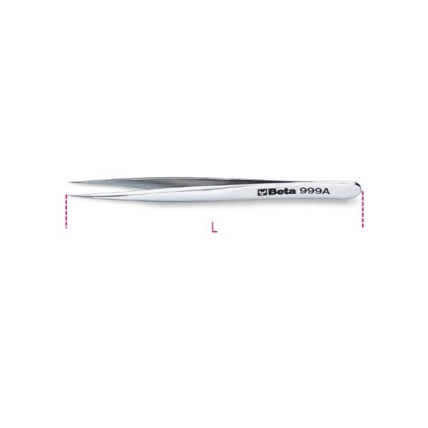 Brucelles à becs courts type aiguille résistant aux acides, antimagnétique pointes lisses finition semi-polie en acier inoxydable