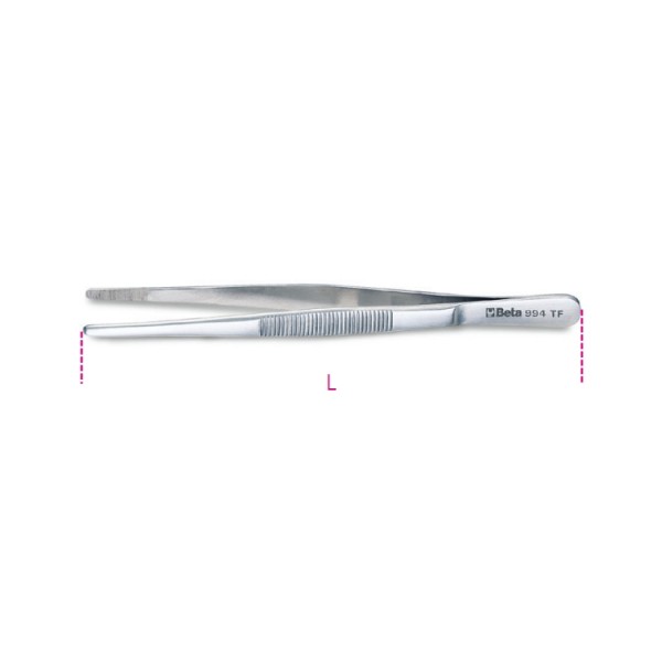 Brucelles à becs droits arrondis résistant aux acides, antimagnétique pointes larges striées finition semi-polie en acier inoxydable