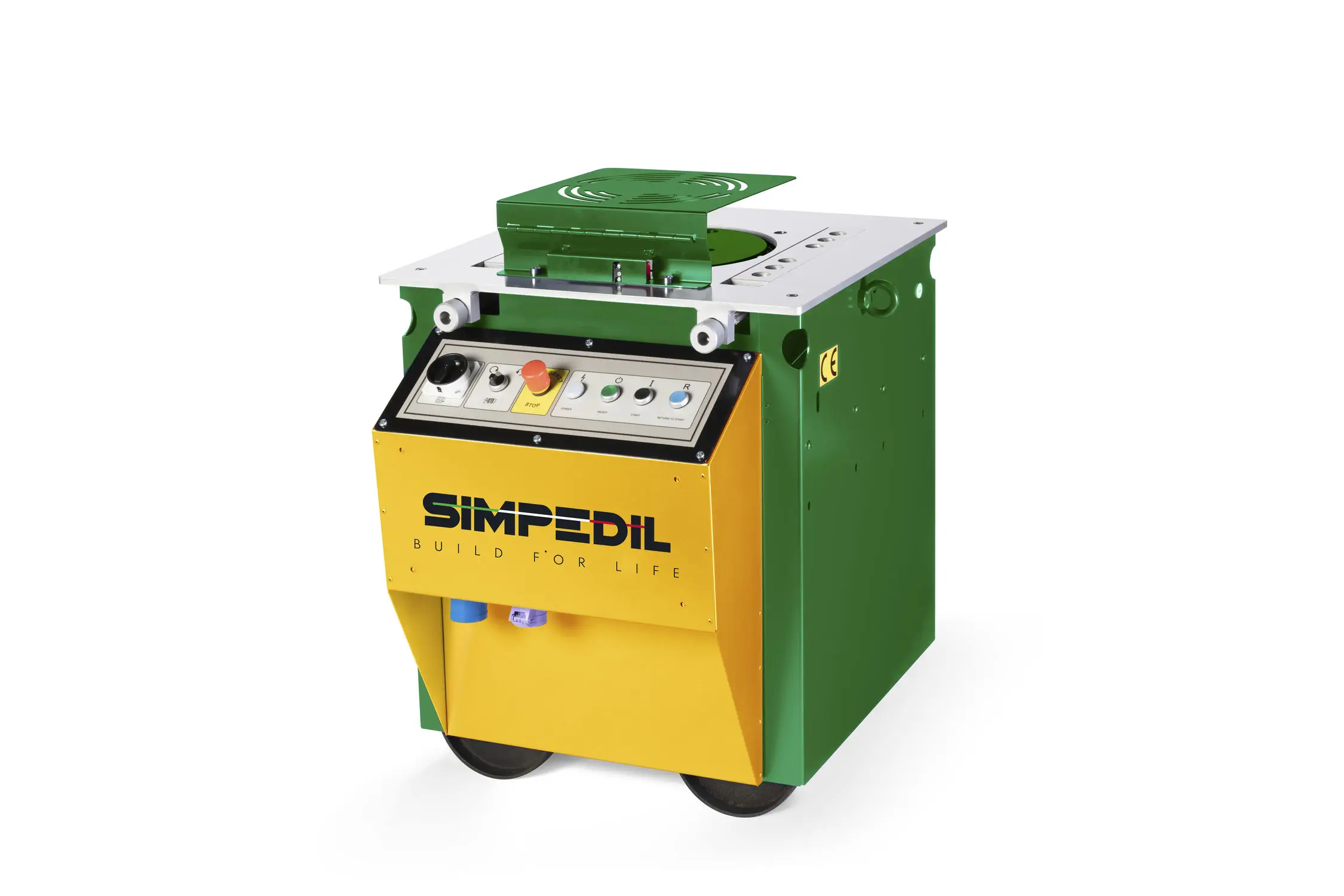 Largement utilisé dans l’industrie du bâtiment et de la construction, la Cintreuse Simpedil est une machine qui permet d’effectuer avec grande précision tout angle de pliage. Le disque peut tourner dans les deux sens, à gauche ou à droite, en changeant le sens de rotation avec l’inverseur électrique placé sur le tableau de commandes et après le pliage il retourne automatiquement au point de départ.