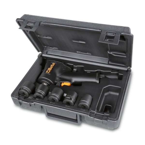 Composition d’une clé à chocs réversible compacte 1927XM et de 5 douilles à chocs, dans coffret en plastique
