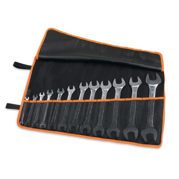 Jeu de 12 clés à fourches dans un trousseau enroulable en polyester durable