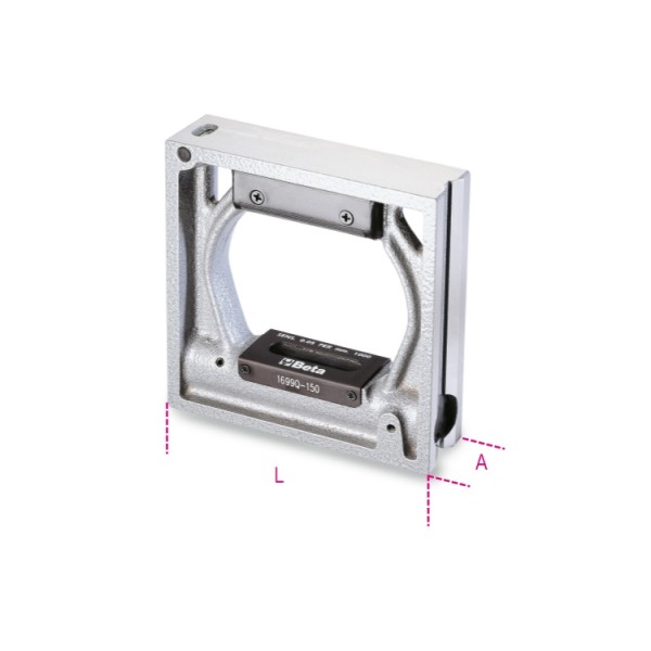 Niveau à cadre de précision corps en fonte, semelles rectifiées (2 rainurées en V et 2 planes) et 2 fioles incassables, précision = 0,05 mm/m