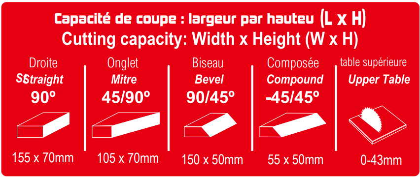 . Scie à onglet combinée avec table de coupe supérieure pour disques widia de ø254 mm.