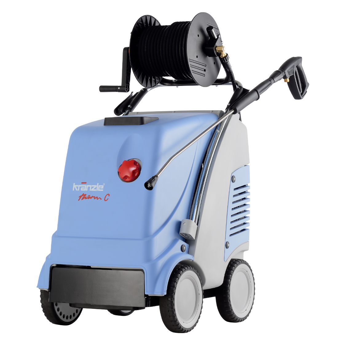 La gamme de nettoyeurs haute pression à eau chaude Kränzle Therm C se distingue par sa compacité, sa pression de service pouvant jusqu’à 180 bars et ses roues tout-terrain de grand diamètre avec un large bandage en caoutchouc plein, ainsi que par ses béliers avant et arrière. Avec ces caractéristiques, ces machines sont prêtes à tout affronter.